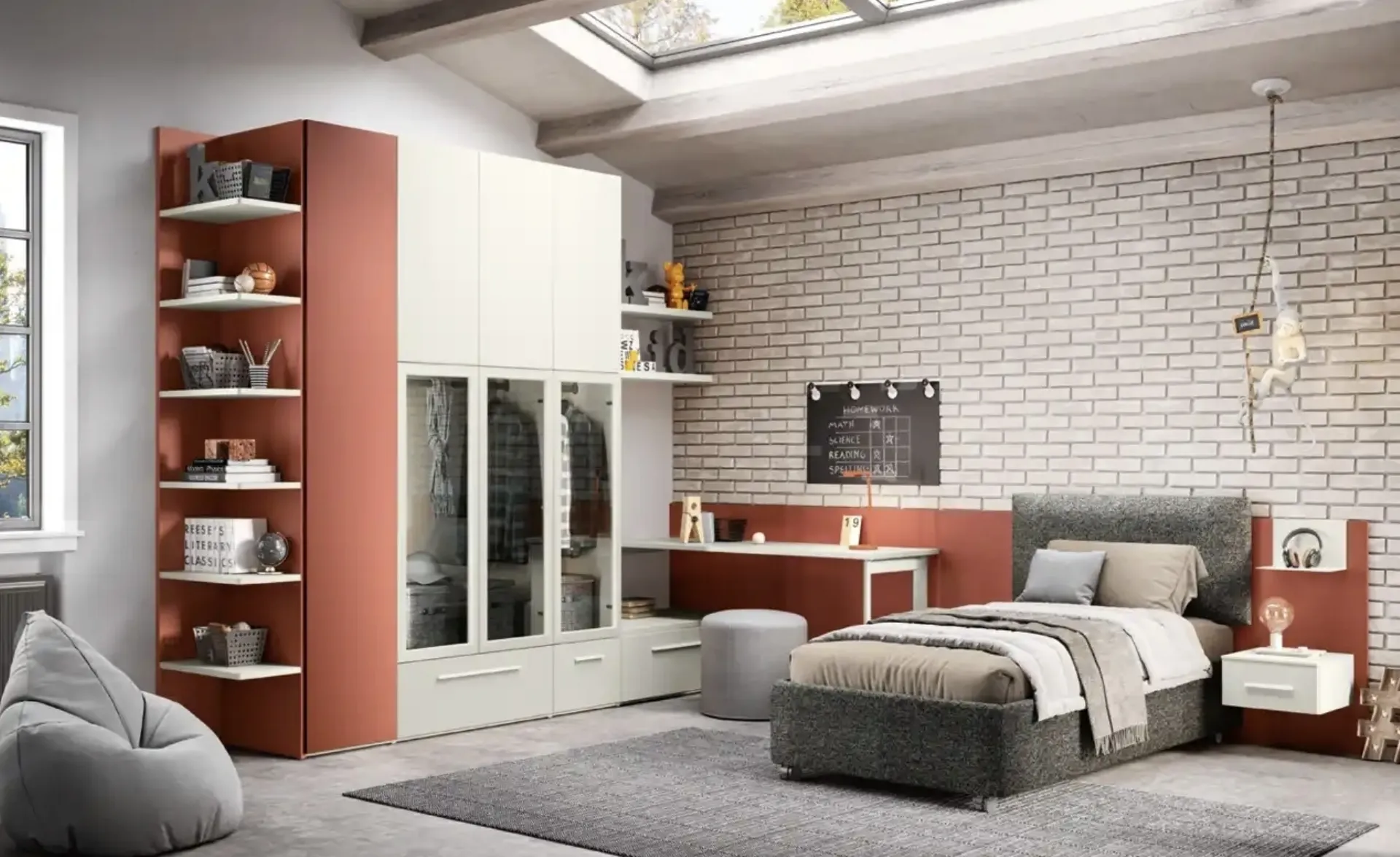 Con questa cameretta K108 Moretti Compact Camerette, tra le soluzioni su misura, potrai arredare stanze moderne per ragazzi.