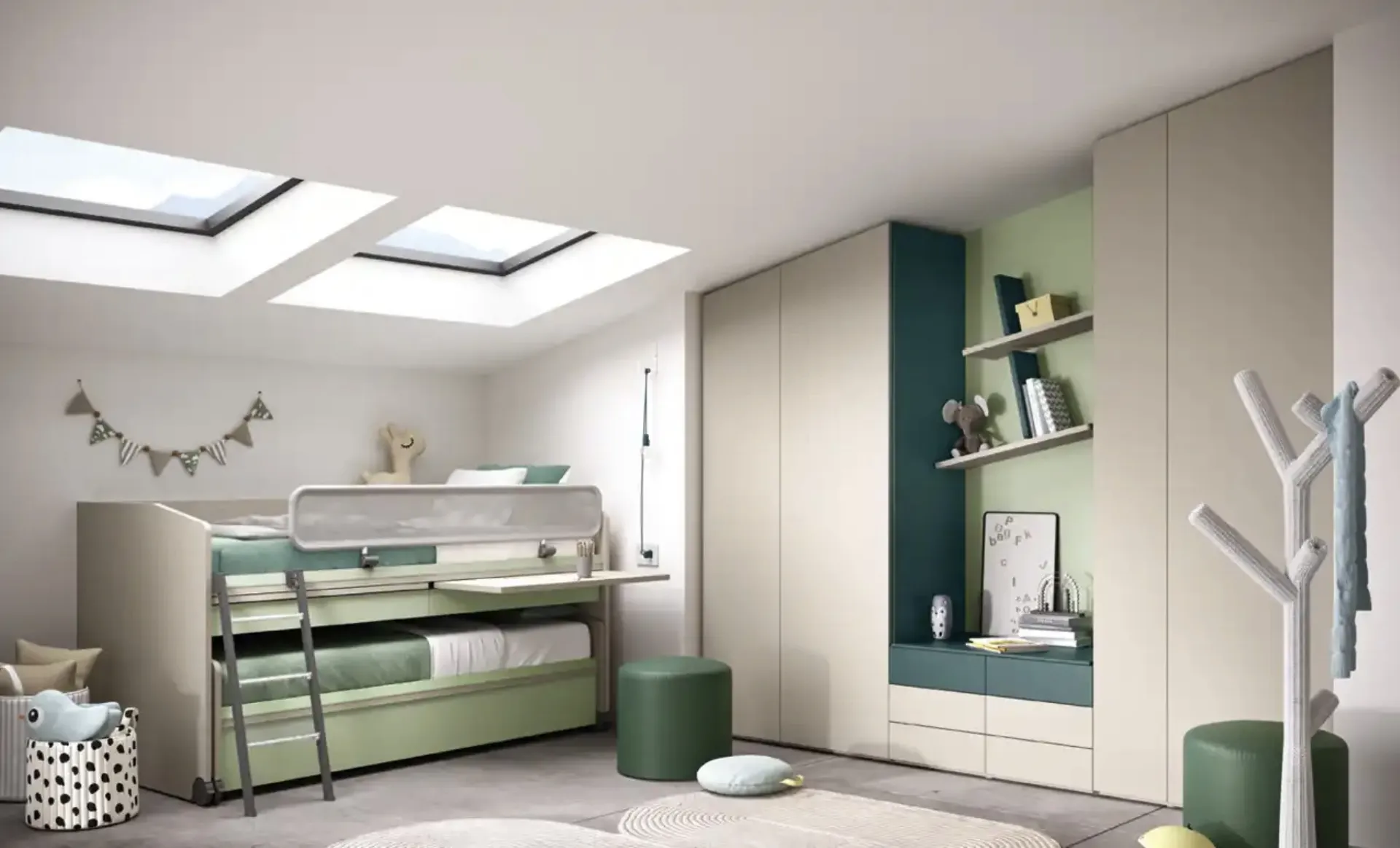 Clicca e scopri di più sulla cameretta per bambine K124! Le Camerette con letti scorrevoli Moretti Compact Camerette ti aspettano.