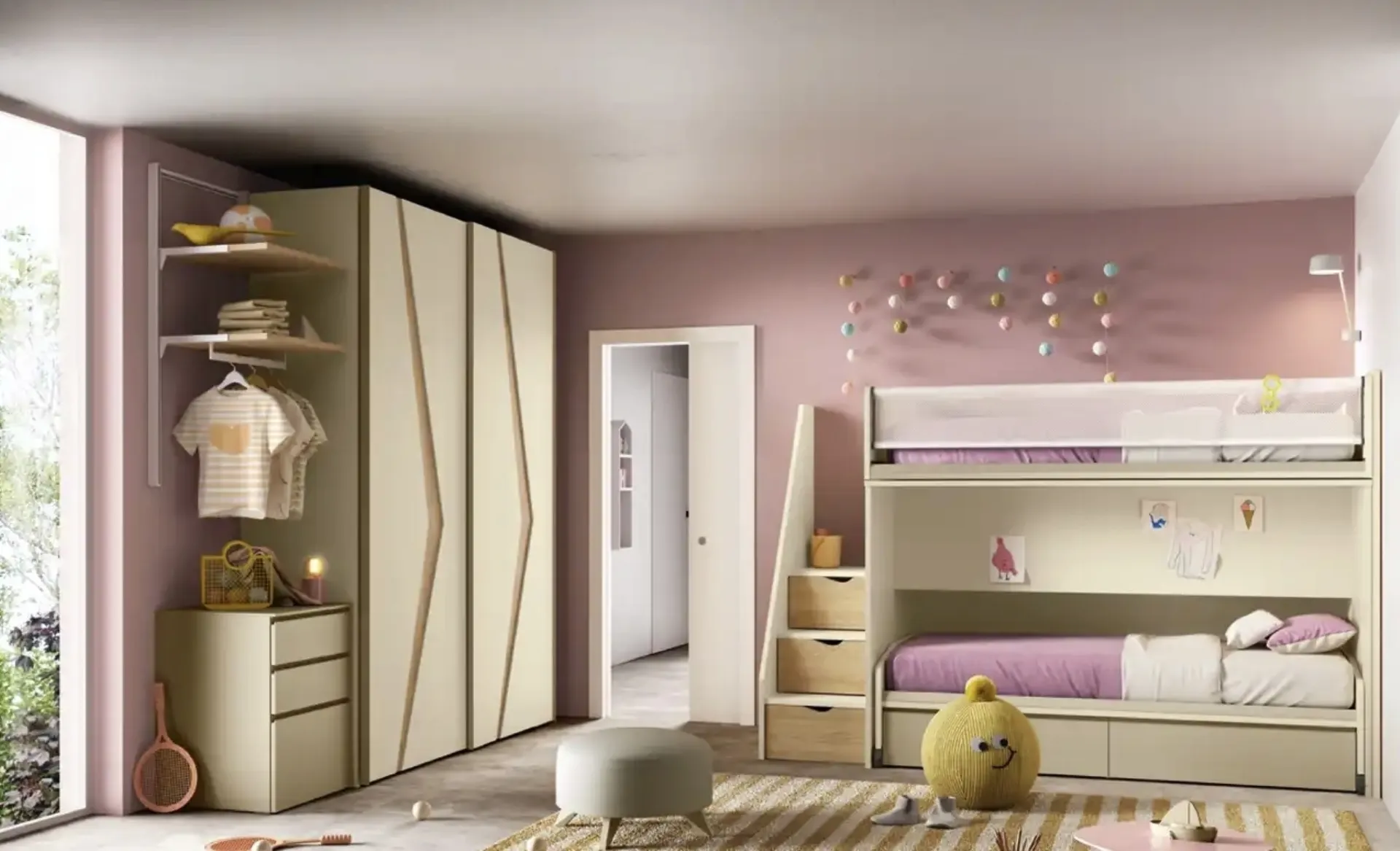 Arreda stanzette moderne con le Camerette con letti a castello Moretti Compact Camerette! Il modello K125 in melaminico è per bambine.