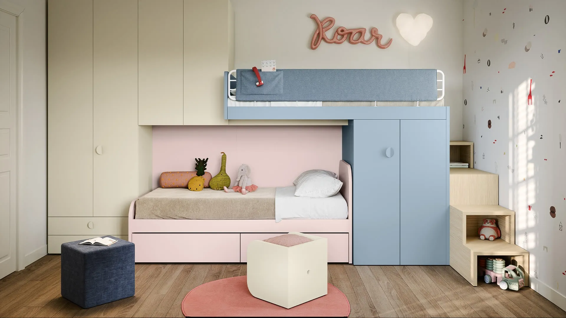 Arreda stanzette moderne con le Camerette a soppalco Nidi! Il modello Soppalco in melaminico è per bambini.