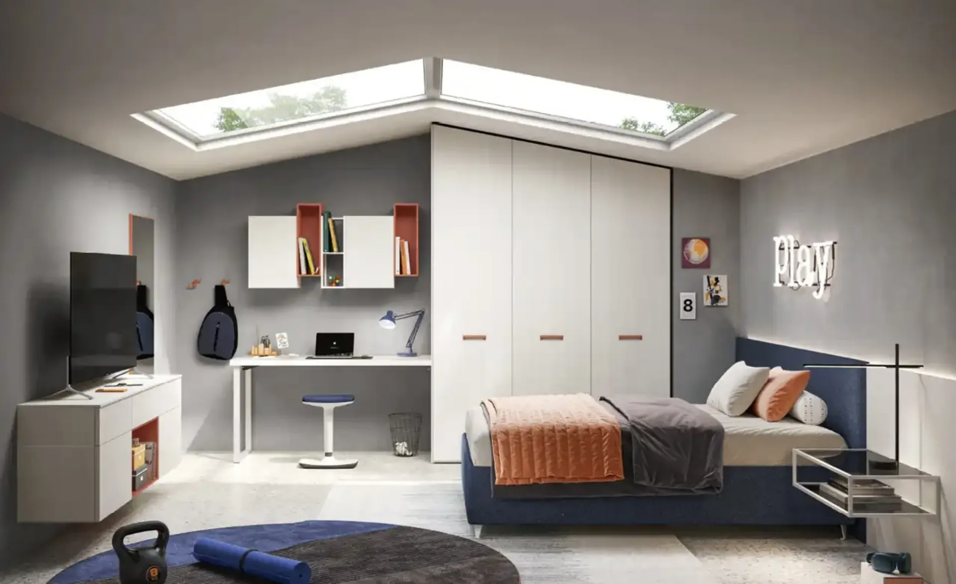Clicca e scopri di più sulla cameretta per ragazzi Y122! Le Camerette su misura Moretti Compact Camerette ti attendono.