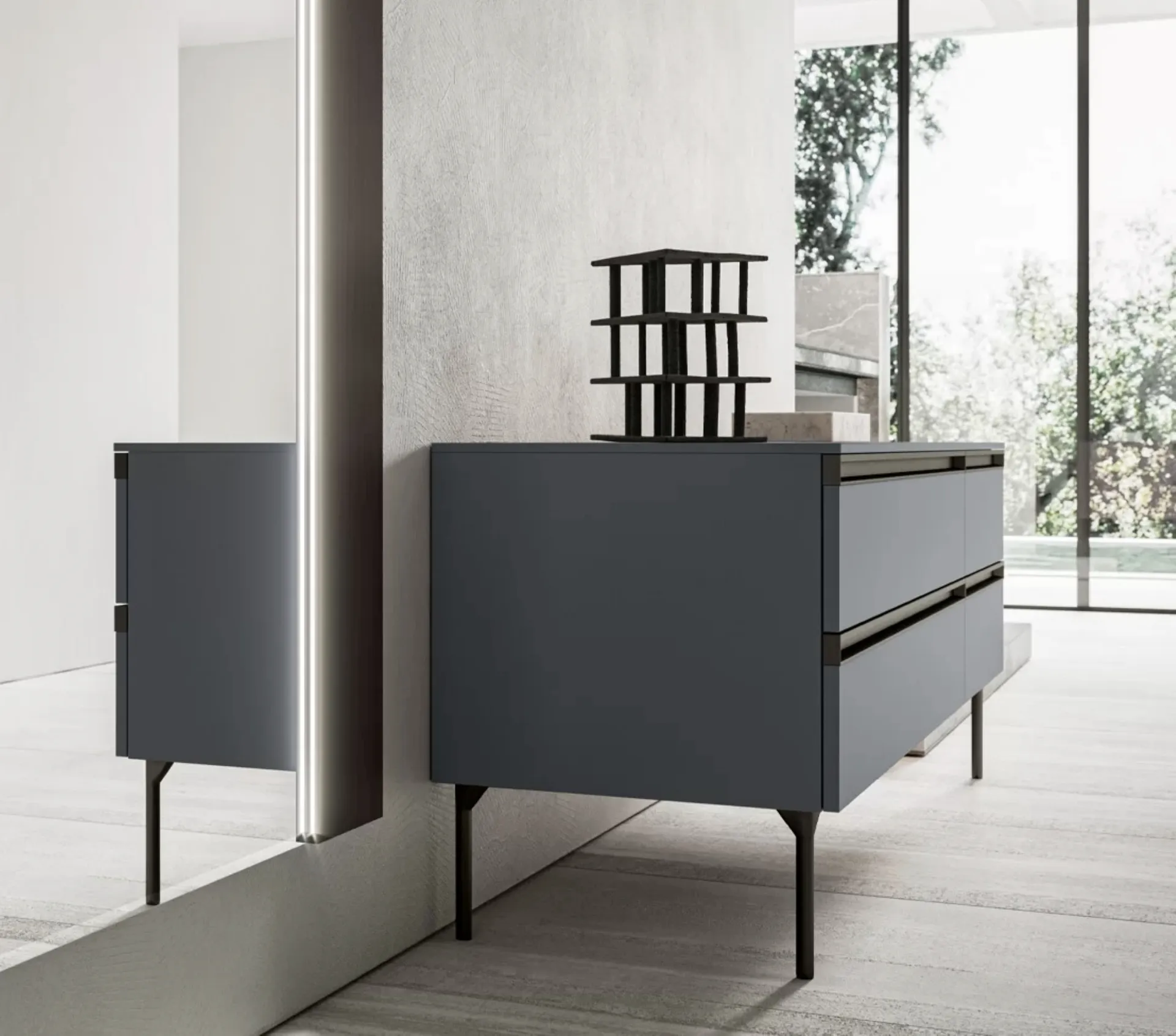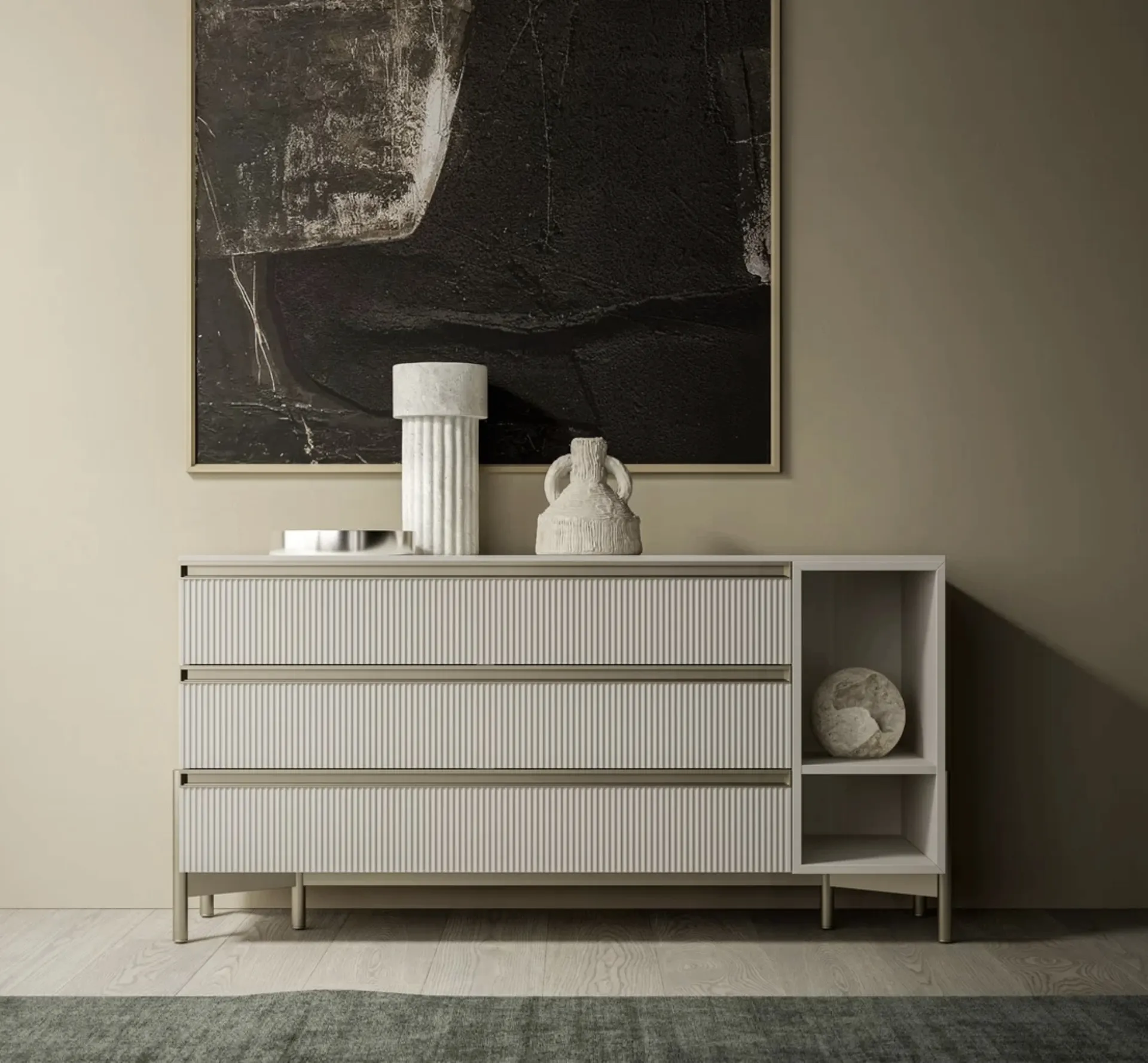 Vuoi progettare la camera da letto con Comodini e cassettiere di SantaLucia? Eccoti il modello Ego Comò 03 in laccato opaco per spazi design.