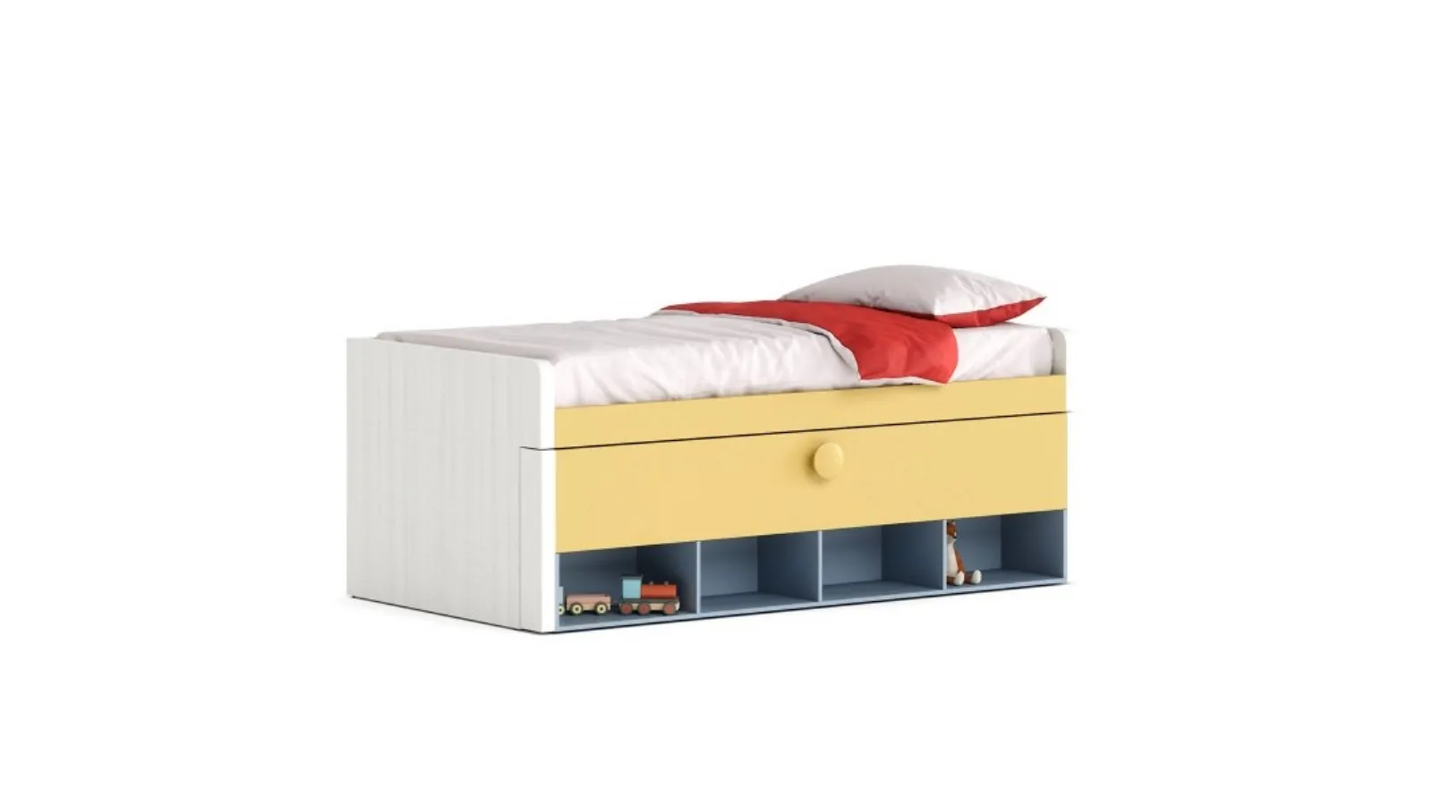 Il letto singolo Pablo in melaminico nell'immagine, tra i modelli con letto estraibile moderni di Nidi, è ideale per garantire il riposo migliore.