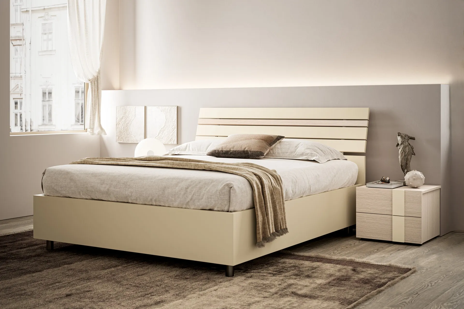 Scegli tonalità e finiture e realizza il tuo concept d’arredo nella zona notte, progettandola proprio come l'hai sempre immaginata. Se vuoi una soluzione in melaminico, il modello mostrato in foto è caratterizzato da materiali di prima scelta e linee decise, che invitano a trascorrere un riposo completo e rigenerante. Durante la scelta della giusta tipologia di letto, valuta attentamente le sue dimensioni, le finiture, la forma e il suo stile rispetto al resto dell'arredo. Il Letto con testiera Baya di SantaLucia ricrea uno spazio familiare e confortevole in ogni zona notte, assicurandoti il sonno più profondo e un design unico.