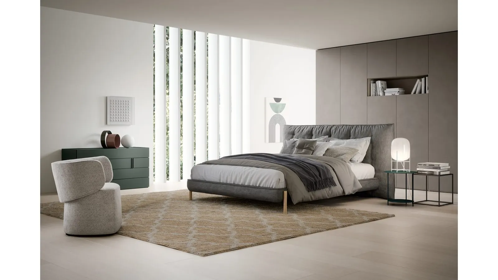 Vuoi organizzare la zona notte? Ecco qui il letto in tessuto Tufté di Novamobili per spazi design.