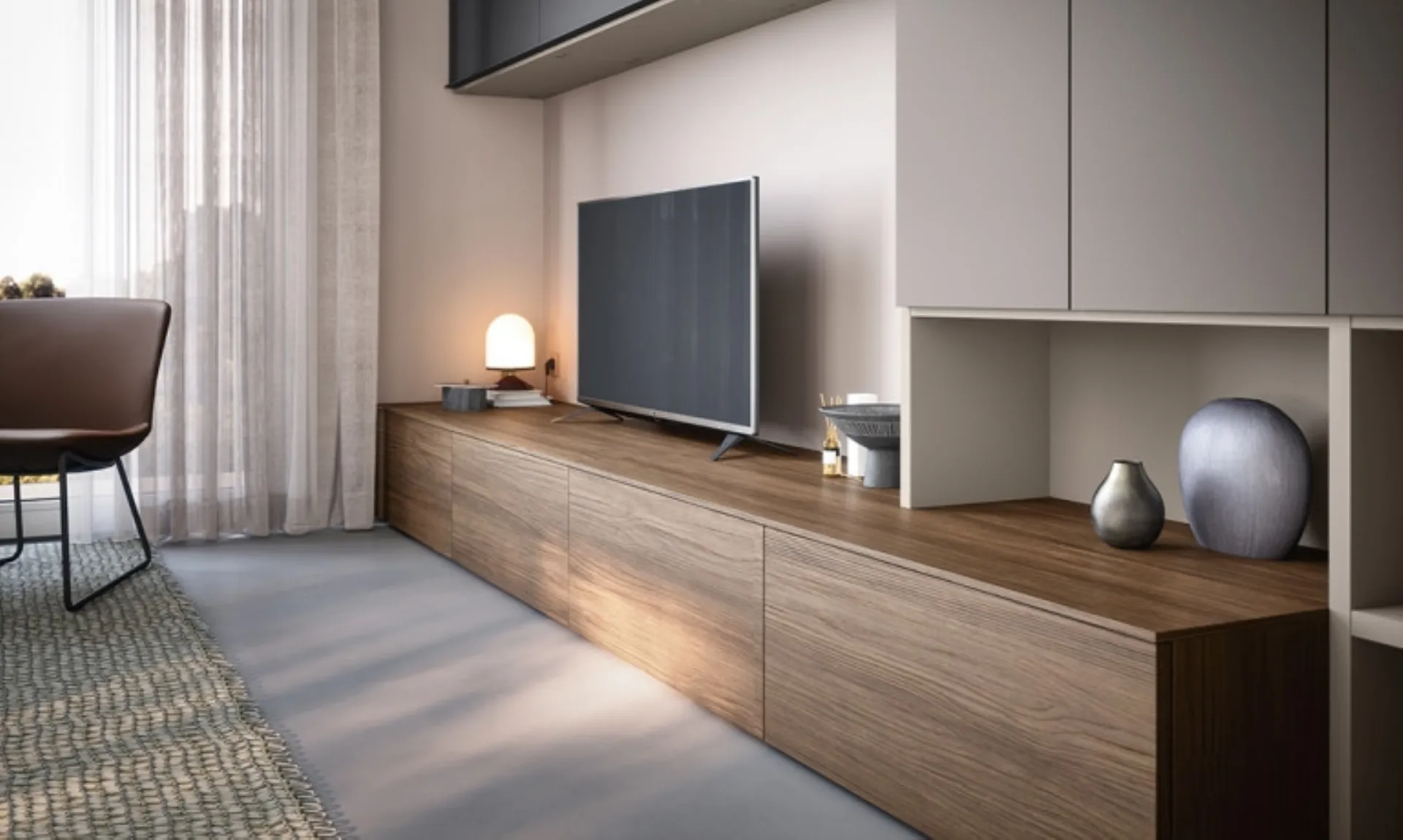 Pareti attrezzate e pensili Cinquanta3: clicca e scopri il modello Parete Attrezzata 05D e potrai valorizzare stanze moderne di ogni tipo.