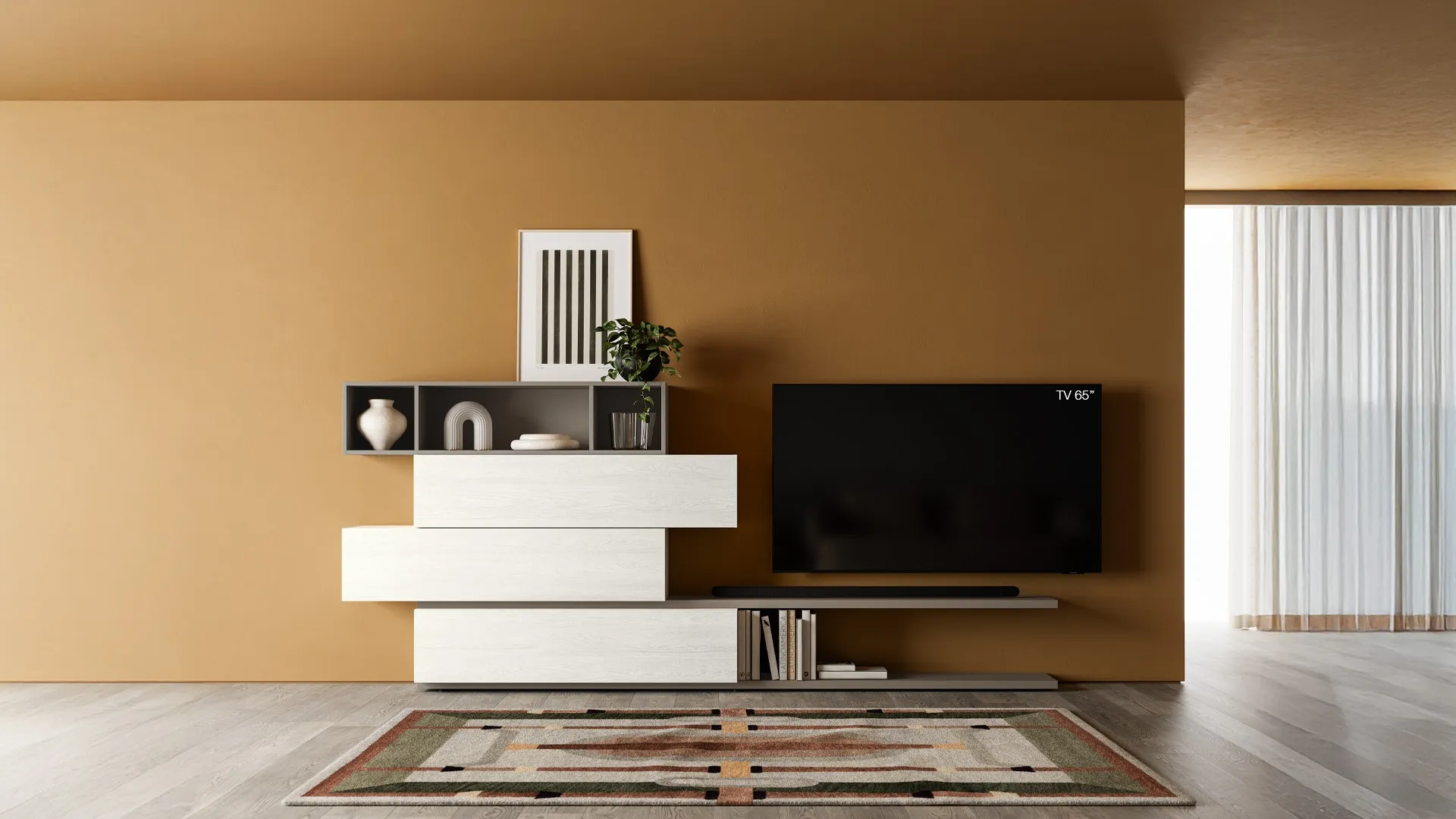 A muro o a centro stanza per ottimizzare un open space, le più esclusive composizioni d’arredo in commercio arredano il soggiorno ottimizzando lo spazio disponibile. Arricchisci i tuoi interni con le Pareti Attrezzate moderne di SantaLucia: in negozio troverai mobili e oggetti accessori di design, in materiali di prima scelta e delle migliori marche. La Parete Attrezzata Pratico PTG402 di SantaLucia nella fotografia ha componibilità su misura e varie possibilità di personalizzazione: scopri la parete attrezzata qui visibile e contattaci per maggiori info e preventivi.