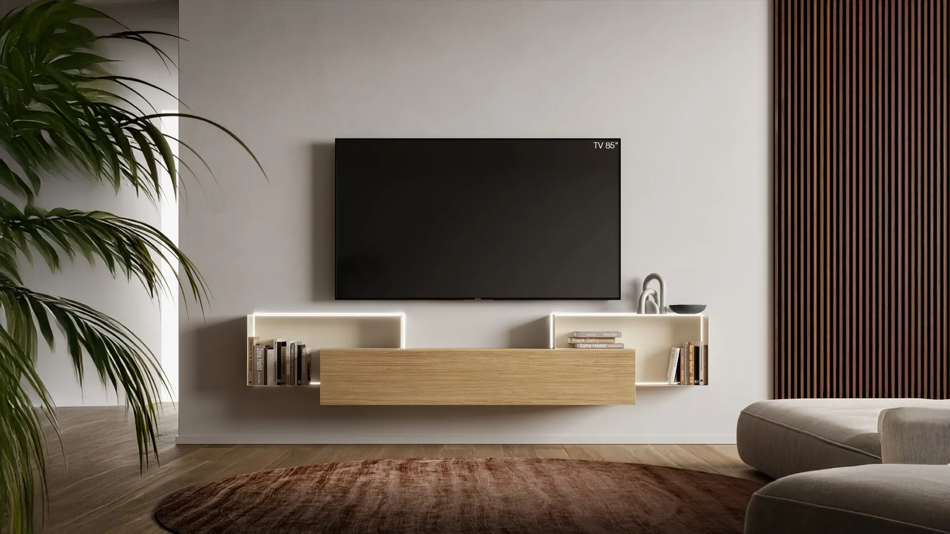 Le Pareti Attrezzate hanno assunto un posto fondamentale nella zona giorno delle nostre case: sono mobili multifunzionali e salvaspazio sempre realizzabili su misura. Attraverso un gioco dinamico di accostamenti fra componenti a giorno o vani chiusi, le Pareti Attrezzate moderne arredano il soggiorno ottimizzando ogni spazio. Questa parete attrezzata è una delle soluzioni del brand e ti consentirà di arredare il soggiorno seguendo le più particolari esigenze abitative.