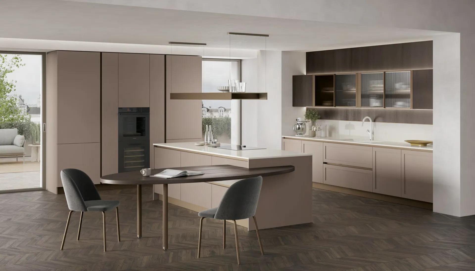 Ottieni informazioni sulla cucina Infinity Modern 02 di Stosa: questa soluzione in Pet sarà l'acquisto ideale per te!